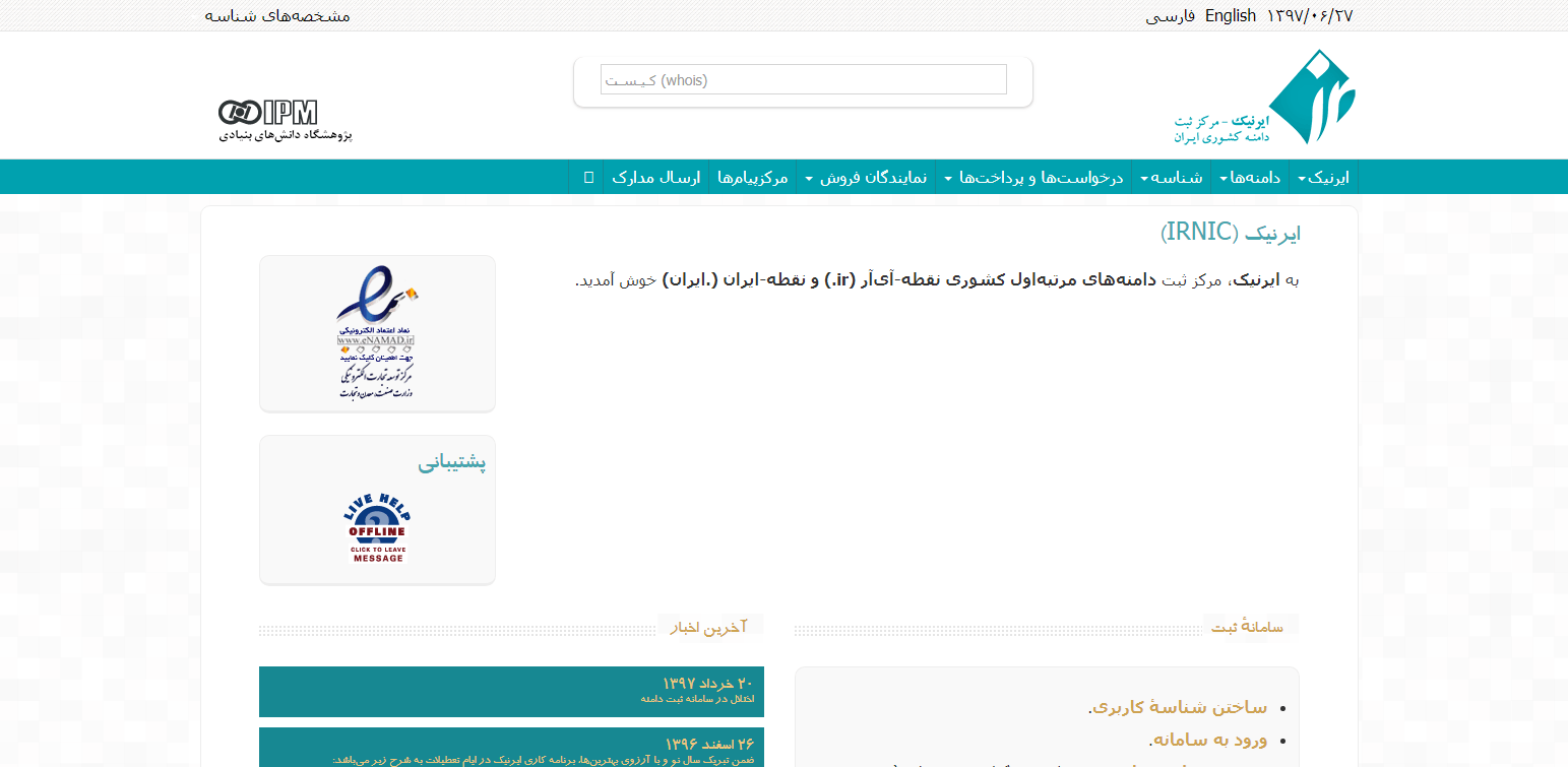 برای شروع باید به سایت مدیریت دامنههای اینترنتی با پسوند ir به آدرس nic.ir مراجعه کنید. توجه داشته باشید که ممکن است در هنگام ورود به سایت با پیام ( ” درخواست مورد نظر موقتا در دسترس نیست ” ) مواجه شوید که برای گذر از آن لازم است تا مجدد برای ورود به سایت تلاش نمایید . همچنین از ساعت ۱۱ شب به بعد دسترسی به این سایت مسدود میباشد.